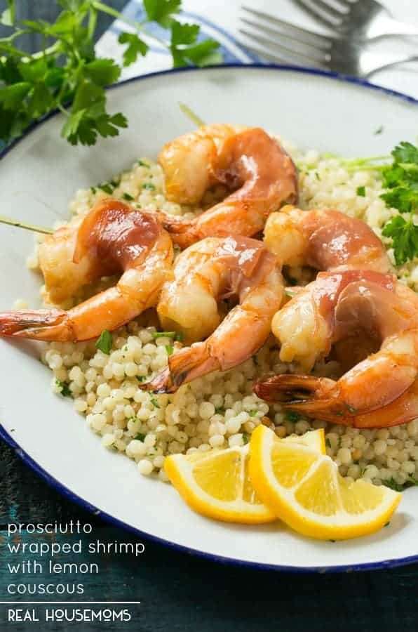This recipe for prosciutto wrapped shrimp with lemon couscous is an elegant yet easy meal that's fit for a special occasion -it only has a few ingredients and is ready in 30 minutes!