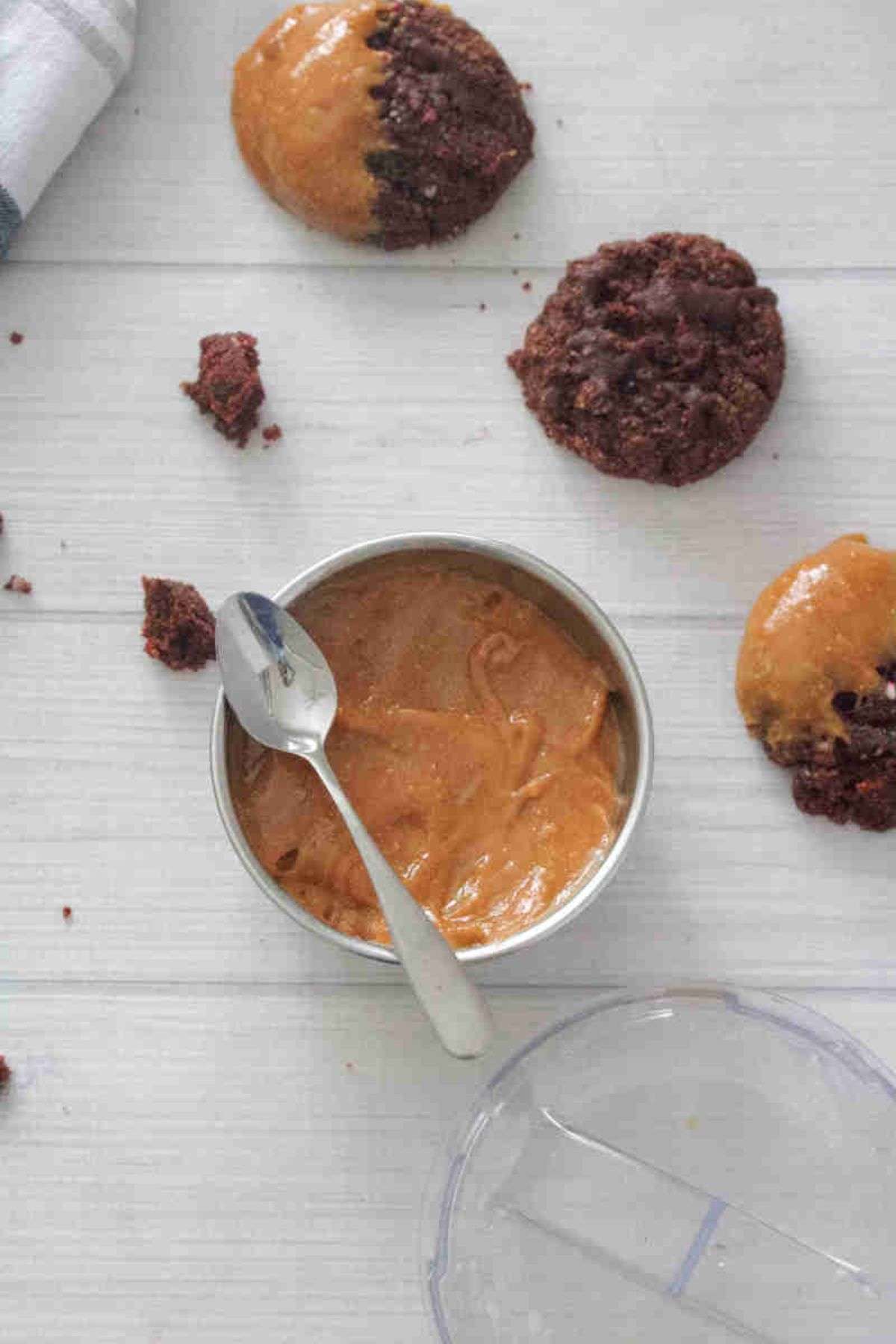 - If you have leftovers and you don’t know what to do with it. Portion it into cookies on a lined baking tray and bake at 350F for 12-15 minutes letting the cookies cool fully on the pan. They’re crispy outside and gooey inside.