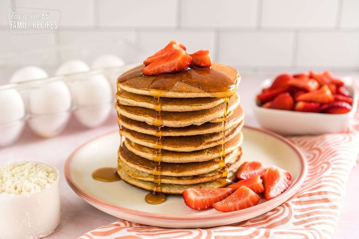 This protein pancake recipe is not only fluffy and delicious, but also packed with high protein ingredients and complex carbs so you can start your day off right!