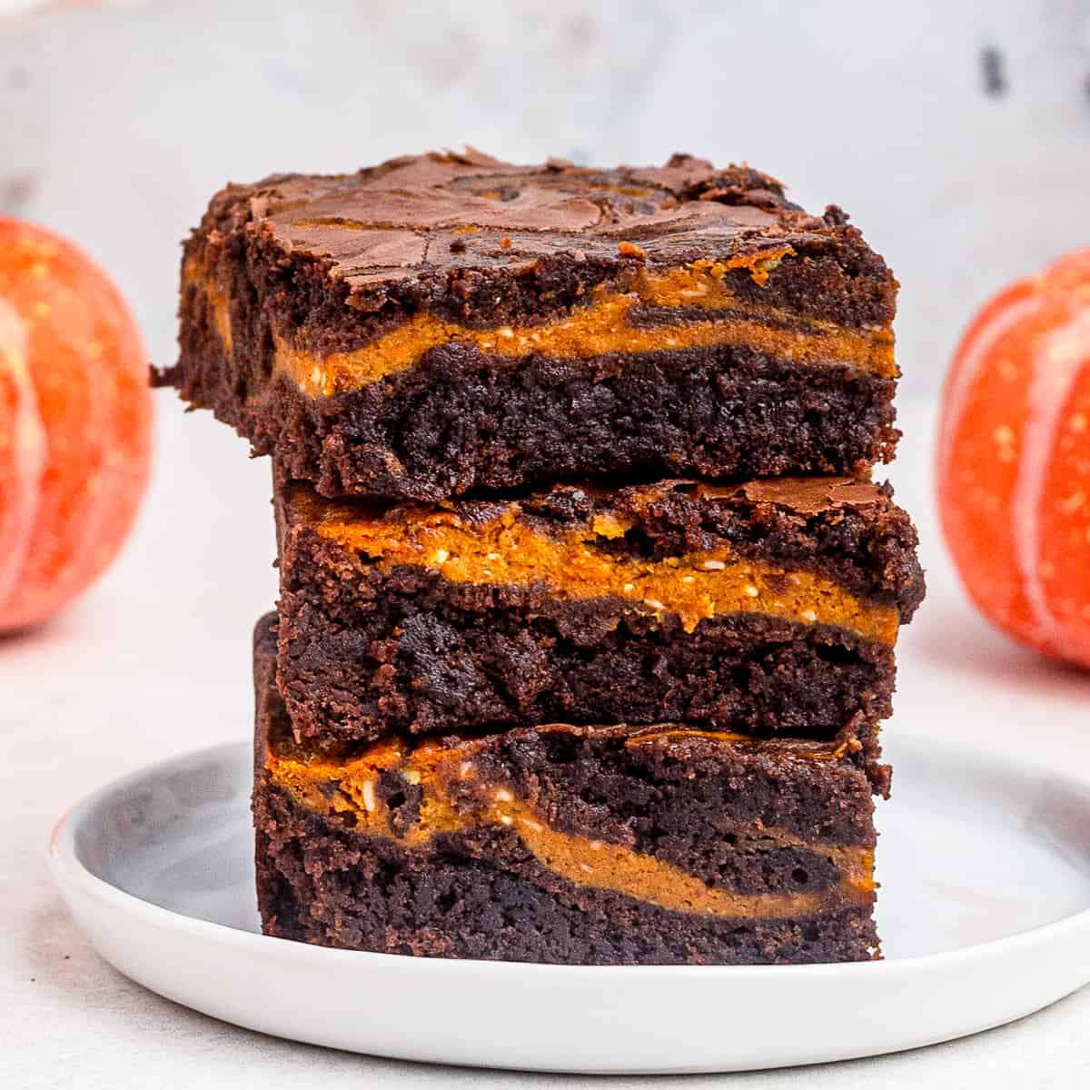 Nothing welcomes the fall season quite like these pumpkin brownies! Fudgy chocolate brownies with a creamy pumpkin swirl.