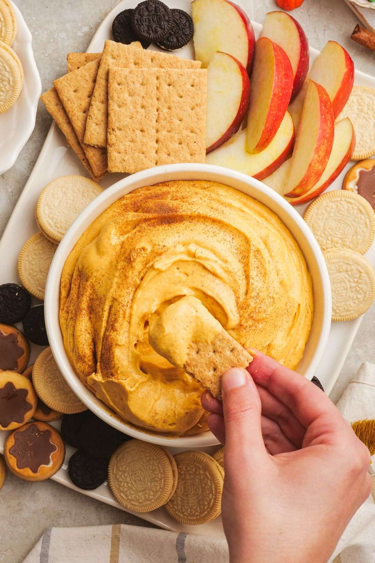 This Pumpkin Cream Cheese Dip recipe is made with cream cheese, pumpkin and vanilla pudding. Perfect with vanilla wafers, graham crackers or gingersnaps!