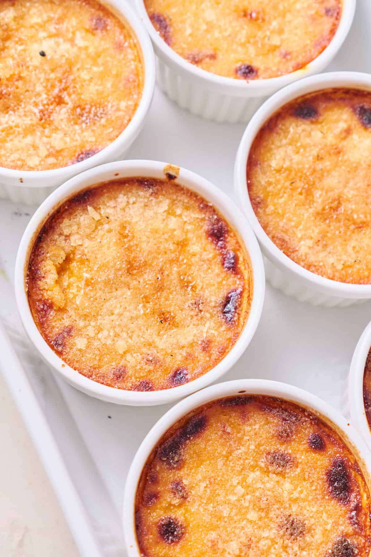 - Sprinkle a thin layer of sugar over each custard. Use a torch to melt the sugar until it forms a crispy top.
