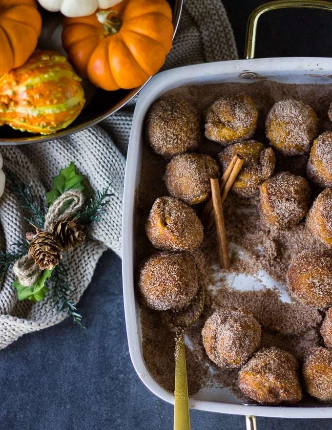 If you're looking for a decadent treat, then this pumpkin donut is the best donut recipe you can make. It can be made all year round but it's perfect for pumpkin season! It's a baked donut hole that's moist and tender without the frying! These sweet pumpkin donuts are truly melt in your mouth delicious :)