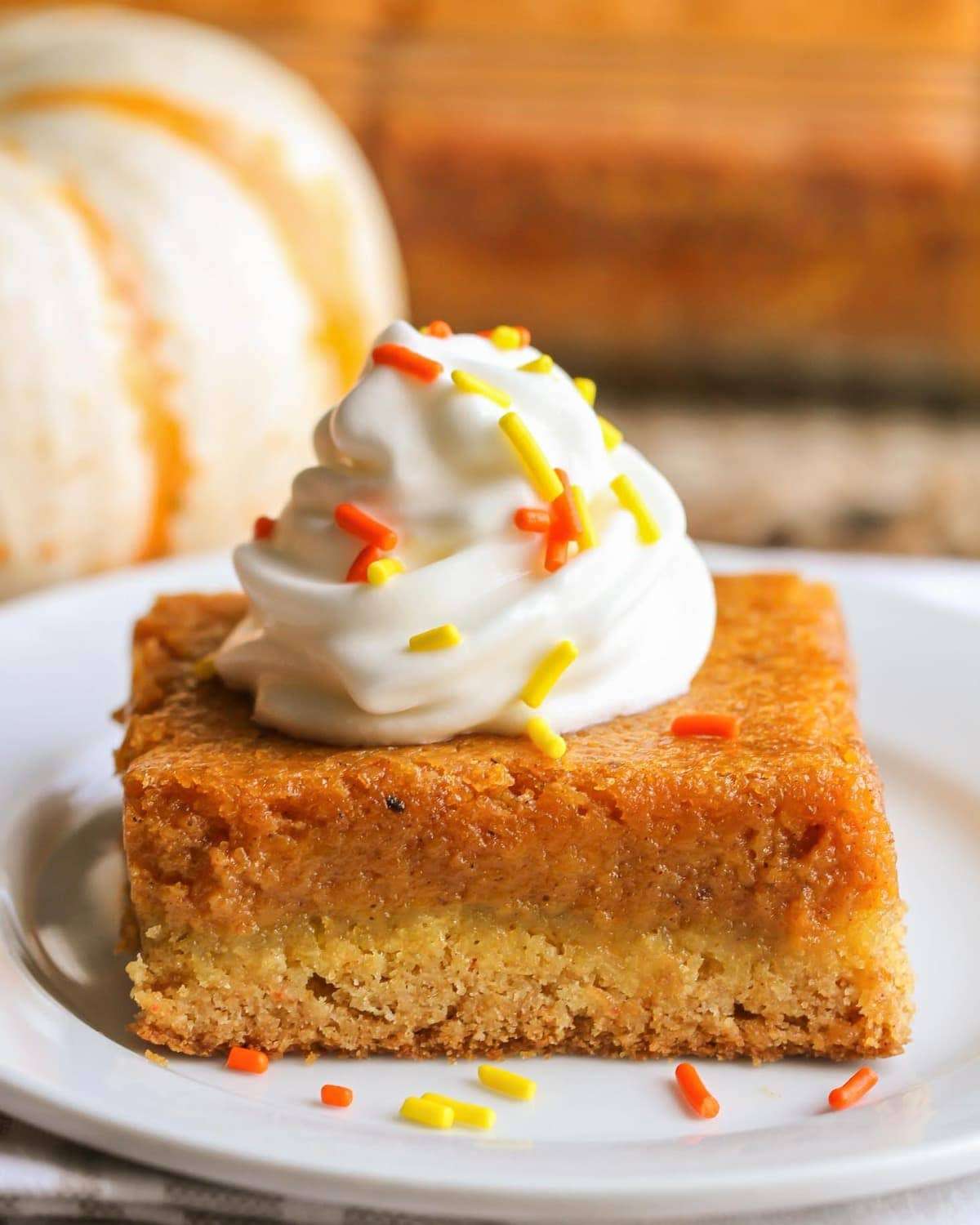 This two layer Pumpkin Gooey Butter Cake is moist, DELICIOUS, and perfect for any fall festivity! The dessert consists of a buttery cake-like bottom layer, plus a creamy layer of pumpkin puree, cream cheese, cinnamon, nutmeg, and powdered sugar.