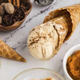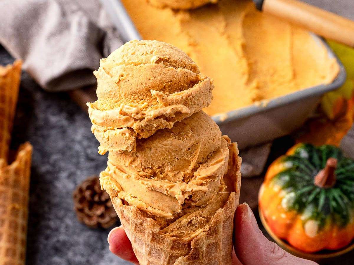 Pumpkin Ice Cream is the perfect fall dessert! Creamy homemade ice cream made with pumpkin purée, brown sugar, and warm pumpkin spice flavor.