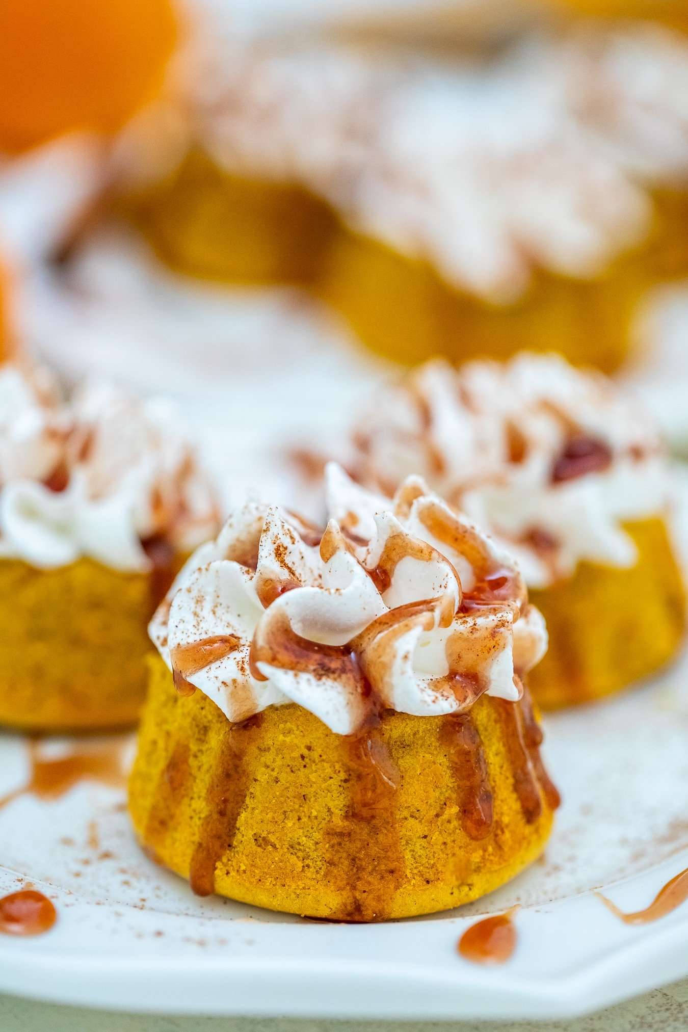 Very easy to make Pumpkin Lava Cakes are stuffed with sweet Dulce de Leche, topped with whipped cream and dusted with cinnamon.