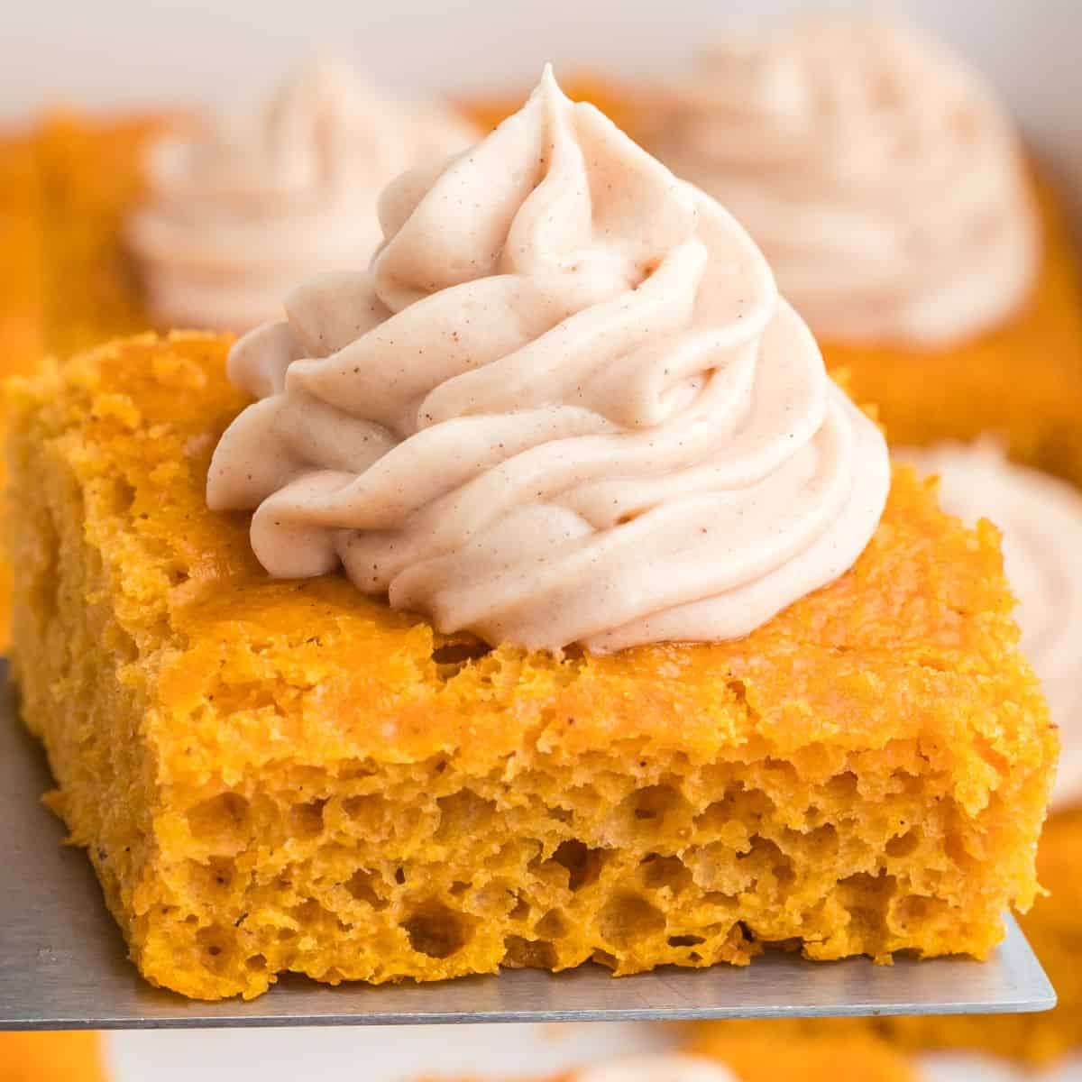 - Once the cake has cooled completely, you can cut it into 12 slices and pipe the frosting onto each slice, or simply spread the frosting over the entire cake before cutting.
