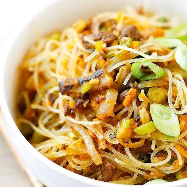 Pumpkin Rice Noodles – delicious rice noodles stir-fried with ground pork and pumpkin. This amazing Taiwanese noodles is very easy to make at home.