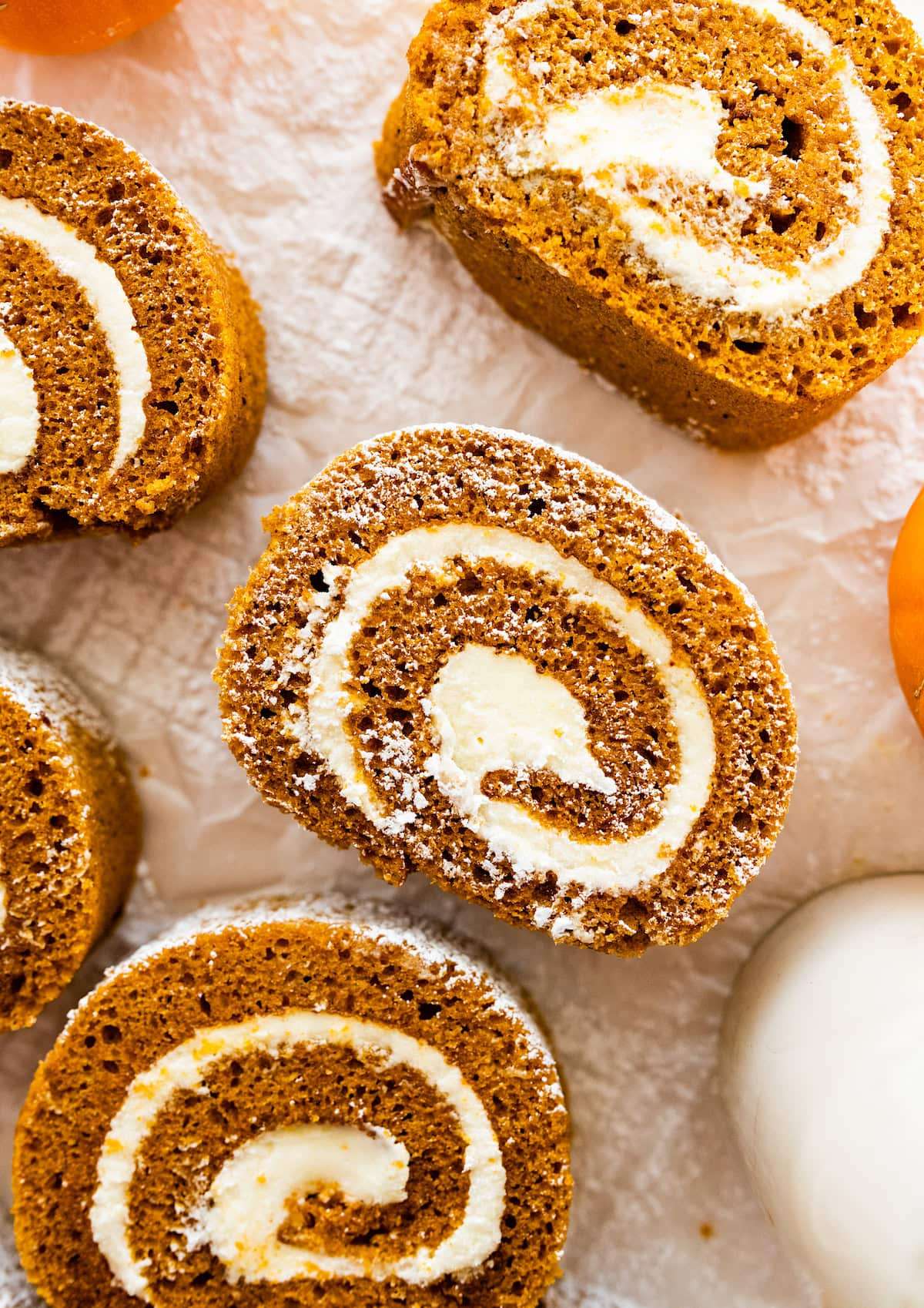 This classic pumpkin roll recipe is a favorite fall dessert. The pumpkin cake is moist, perfectly spiced, and filled with a rich cream cheese filling. It can be made in advance, making it a great dessert for Thanksgiving or any day!