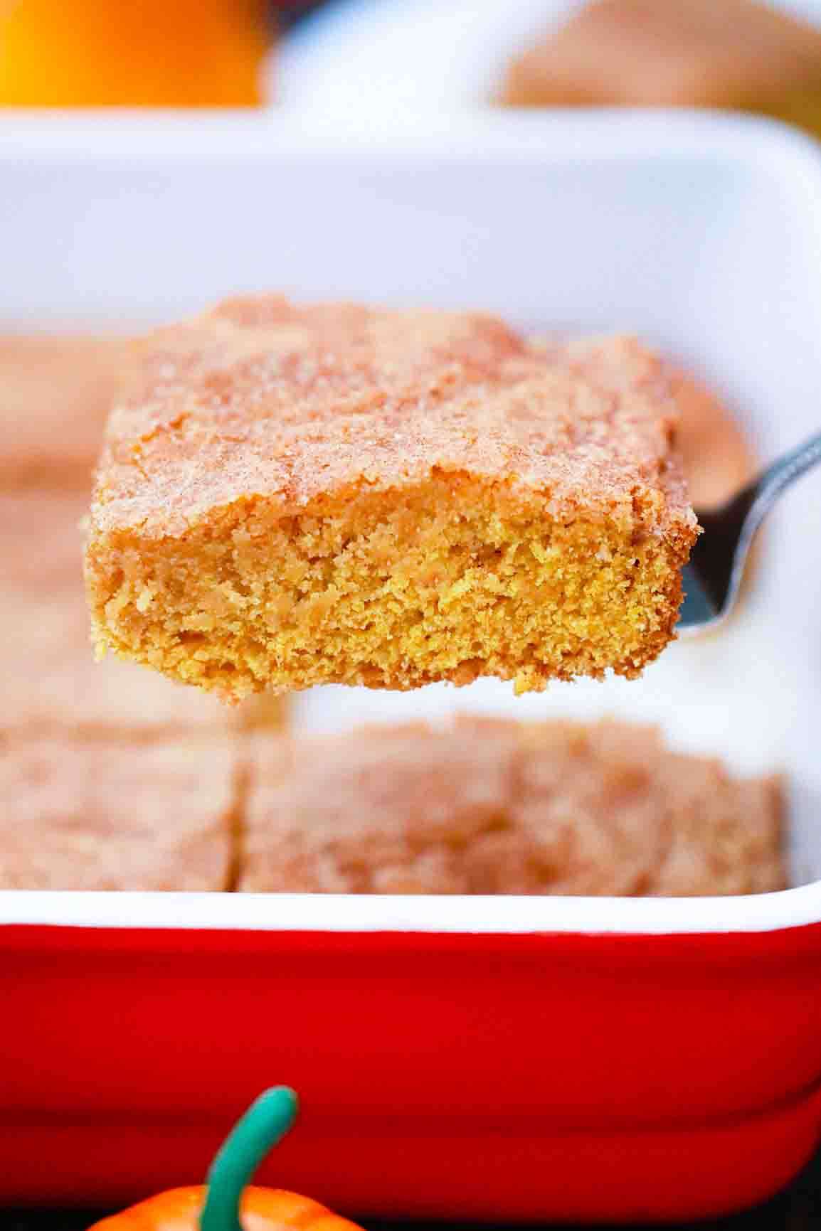 Pumpkin Snickerdoodle Bars are sweet, chewy, and extremely buttery, loaded with pumpkin and warm fall spices.