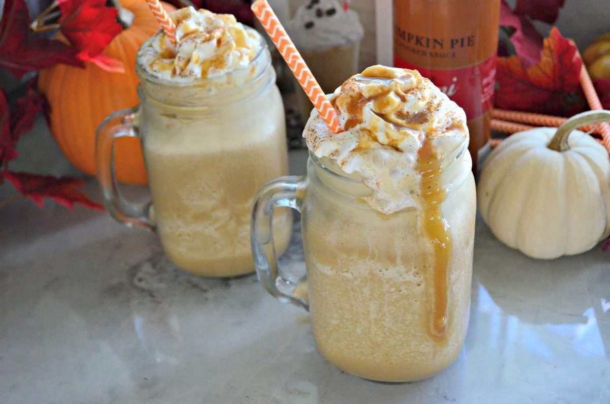 - Place the ice in a blender followed by the Torani Real Cream Coffee Frappé Mix and Torani Pumpkin Pie Syrup. Close the blender and blend for 45 seconds or until smooth.