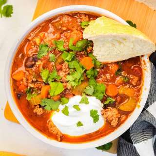 - Enjoy the chili with desired toppings, such as avocado, nonfat plain Greek yogurt, cilantro, and salsa.