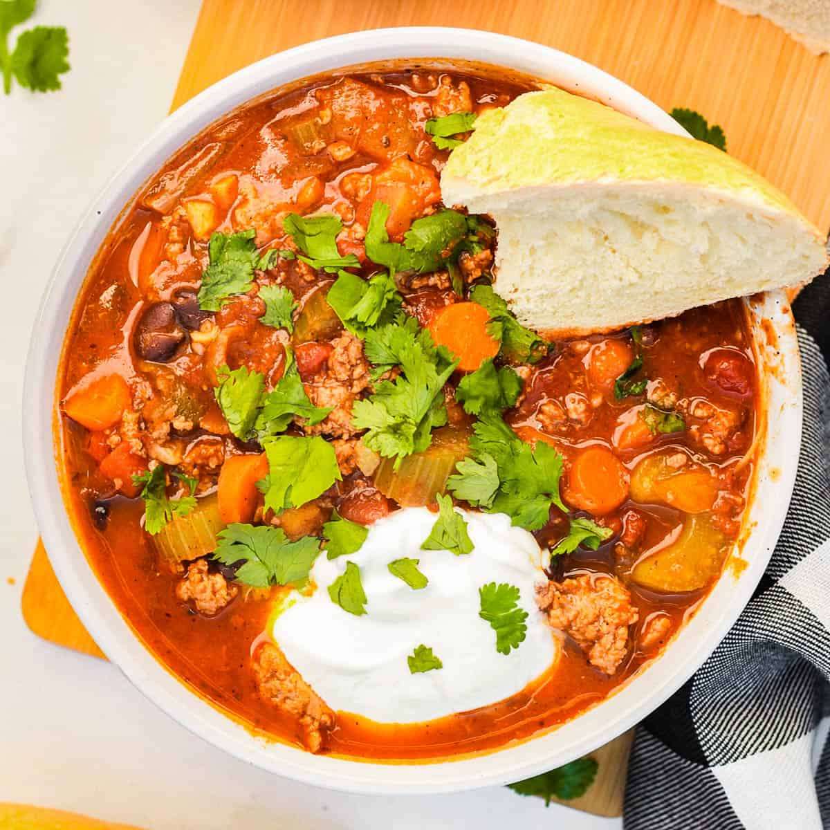 This Pumpkin Turkey Chili recipe is packed with lean protein, wholesome pumpkin, and delicious blend of beans and spices. It's a hearty dish that brings the essence of fall to your table in less than an hour!