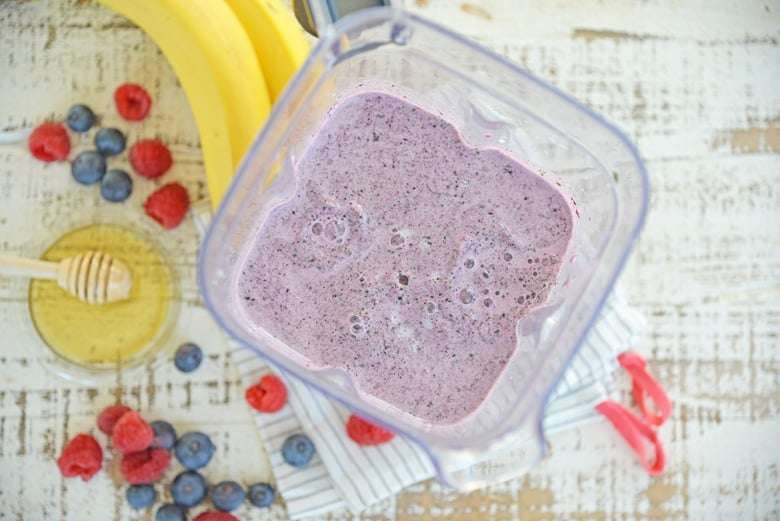 Purple Power Smoothie Recipe- Healthy smoothie recipe to help you stay full and lose weight. With loads of fresh fruit, this protein shake also uses Greek yogurt and milk!