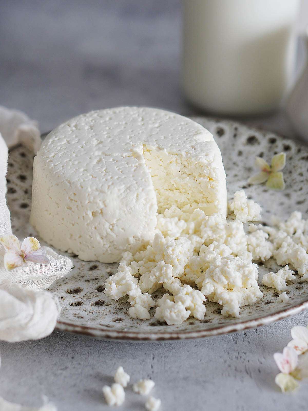 - Remove the liquid from the bowl (or use a different bowl) and transfer the cheese to it. Crumble it and taste for salt. If it needs more, add according to taste. Mix well.