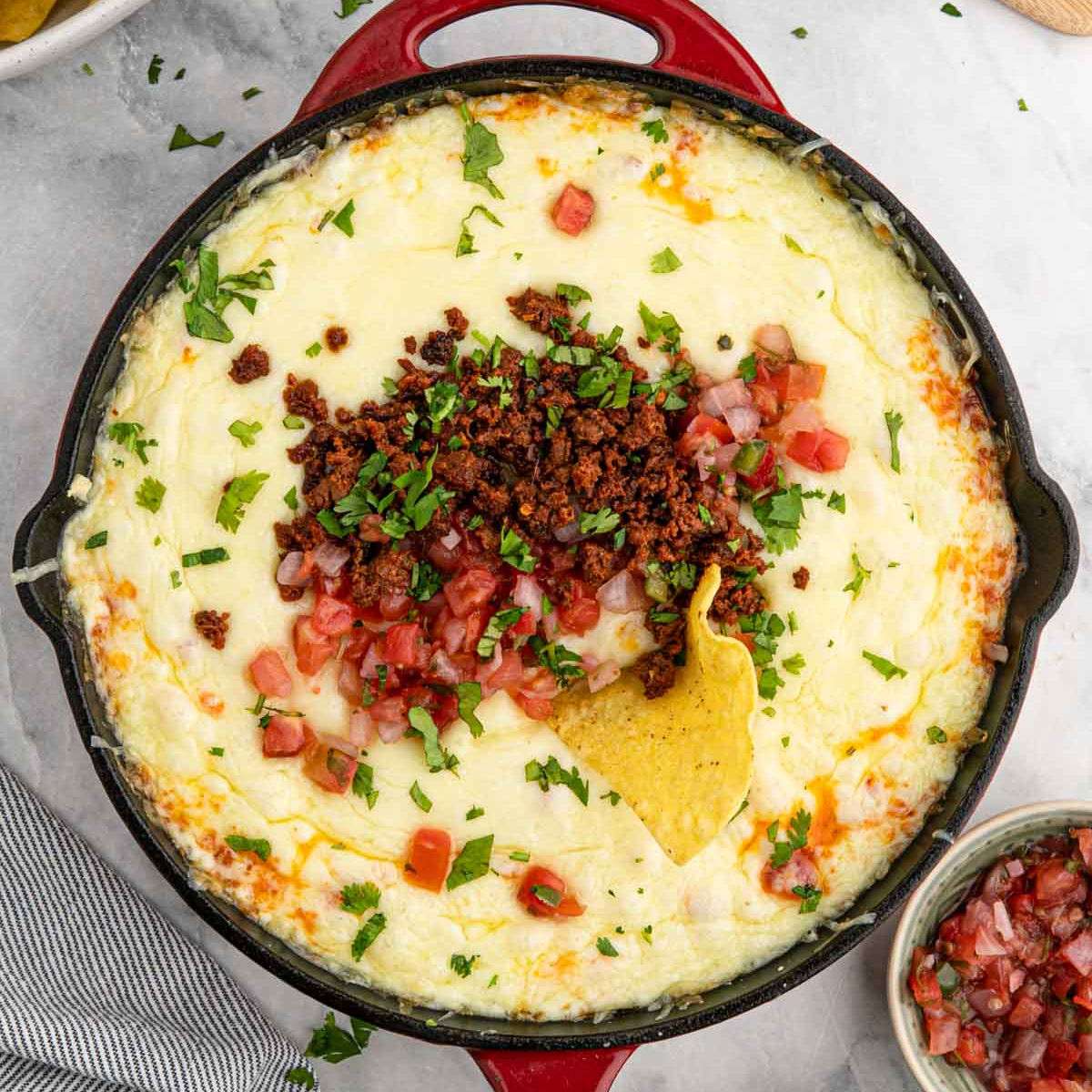 This Queso Fundido Con Chorizo is a cheesy, melty dip that is loaded with flavor. Serve with your favorite tortilla chips for the ultimate party dip.