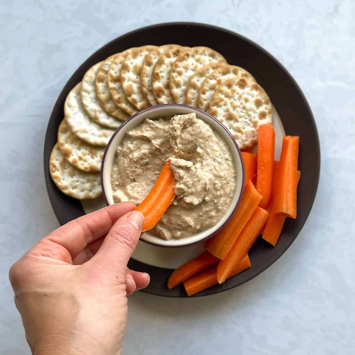 This quick Canned Tuna Dip is inspired by a classic Italian tonnato sauce recipe, traditionally made with canned tuna, lemon, capers, and olive oil plus the anchovies and mayonnaise that are omitted in this recipe. But I promise that this lighter version tuna spread can be made in 5 minutes and will be just as delicious when you serve it at your Superbowl party in spread in a tuna sandwich or tuna melt.