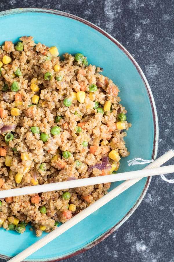 Quinoa Fried Rice is a fun alternative to the typical fried rice and will give you a boost of protein and fiber!