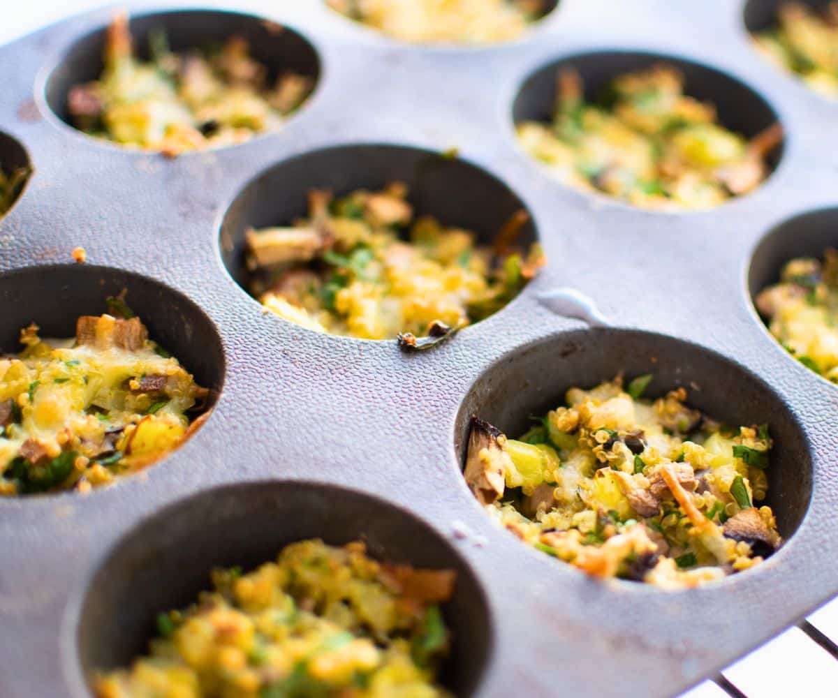 - Mix the cooked quinoa with the grated cheese, diced peppers, mushrooms, chopped baby spinach, and eggs.