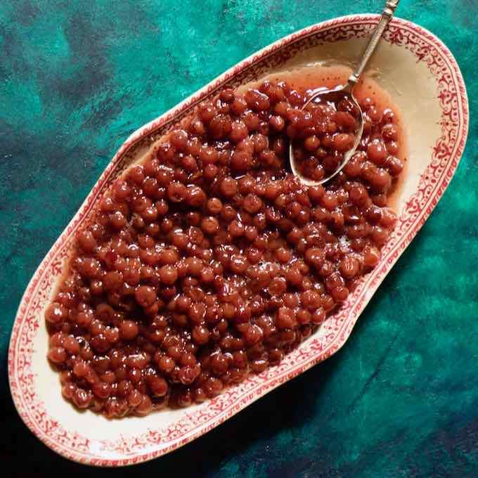- Triture algunos arándanos rojos ligeramente con la parte posterior de una cuchara para liberar algo de su jugo y ayudar a disolver el azúcar.