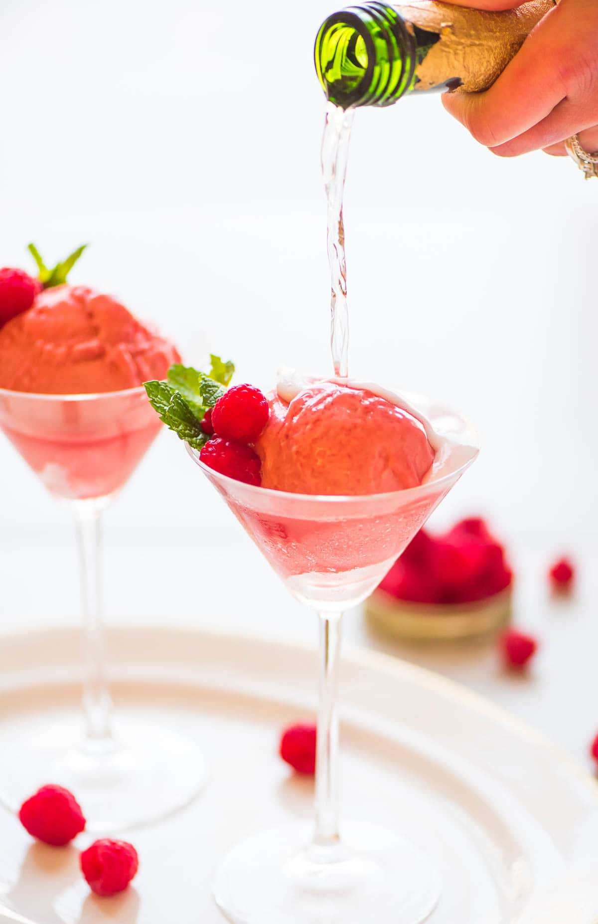 - Raspberry sherbet* or sorbet—1 scoop per person—I used sherbet for the creamier texture, but sorbet is a delicious dairy-free option