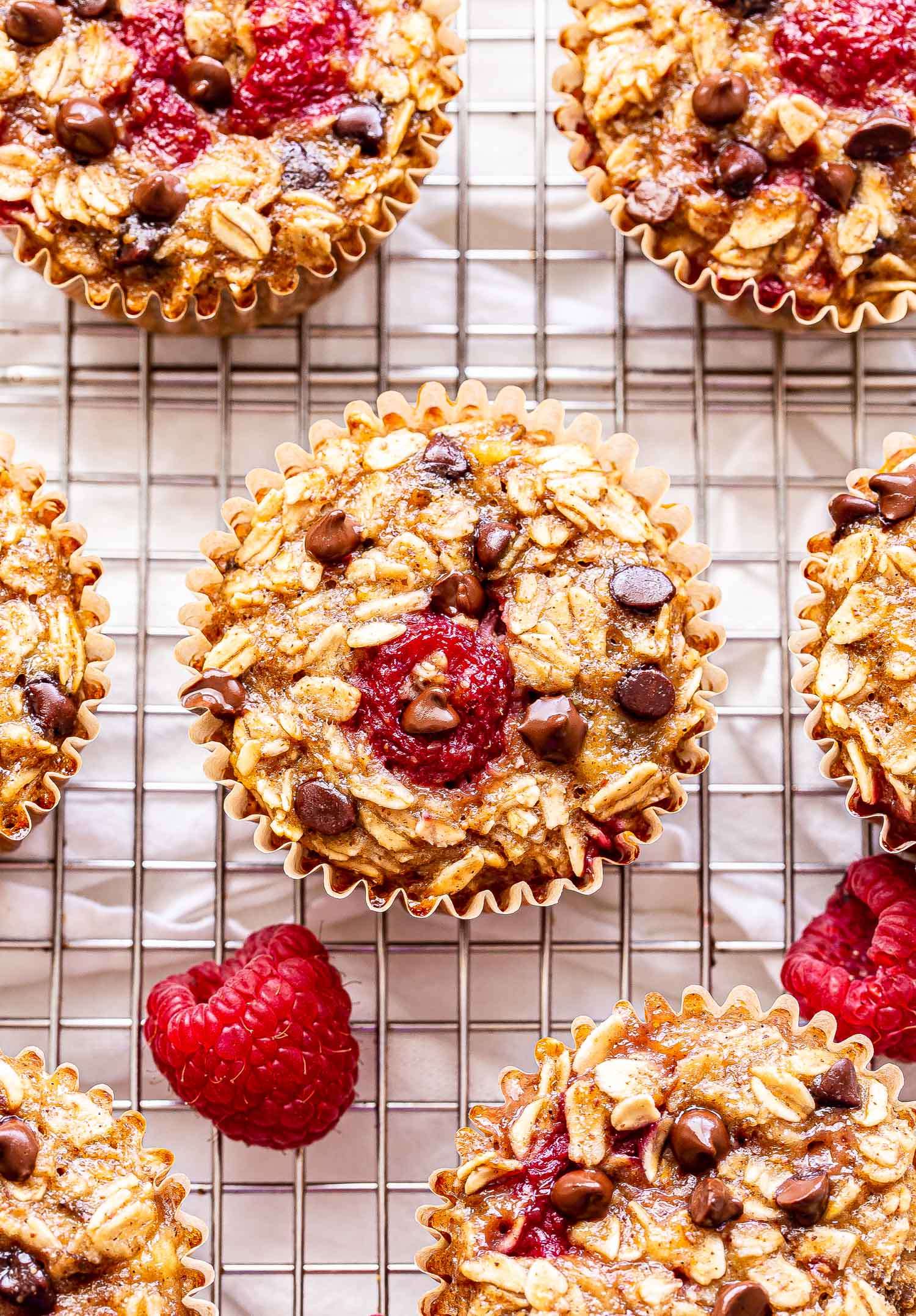 Raspberry Chocolate Chip Baked Oatmeal Cups are perfect for days when you need an easy and healthy breakfast or snack!