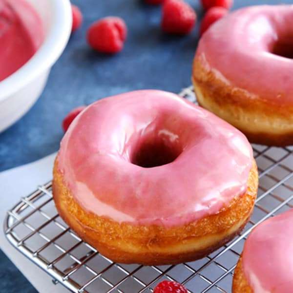 This golden, vanilla-raspberry donuts recipe with sweet lemon glaze is a yummy homemade gift for Valentine's Day.