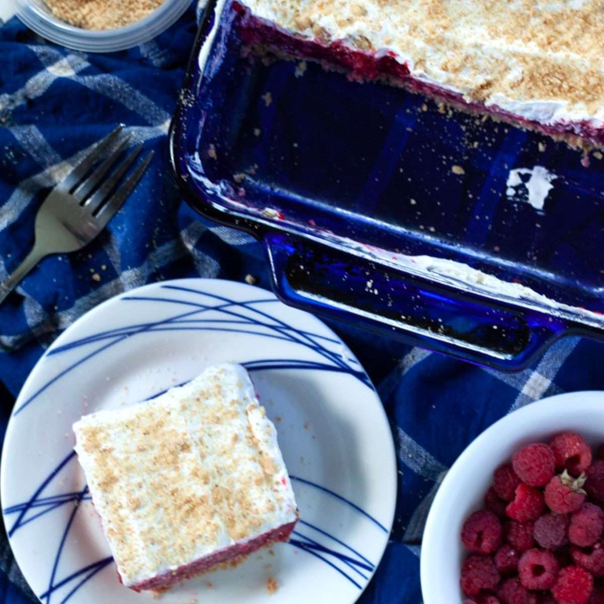 A tart, jiggly raspberry layer sandwiched by a crisp graham cracker-walnut crust and light whipped topping makes these Raspberry Graham Cracker Bars one cool dessert.