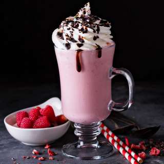 - In a microwave-safe mug, combine chocolate milk and raspberry syrup. Microwave on high for 90 seconds, or until desired temperature.