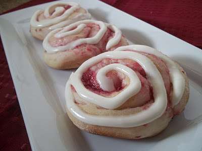 Light and fluffy, chewy and tender brigthly flavored raspberry rolls finished with a rich cream cheese icing.