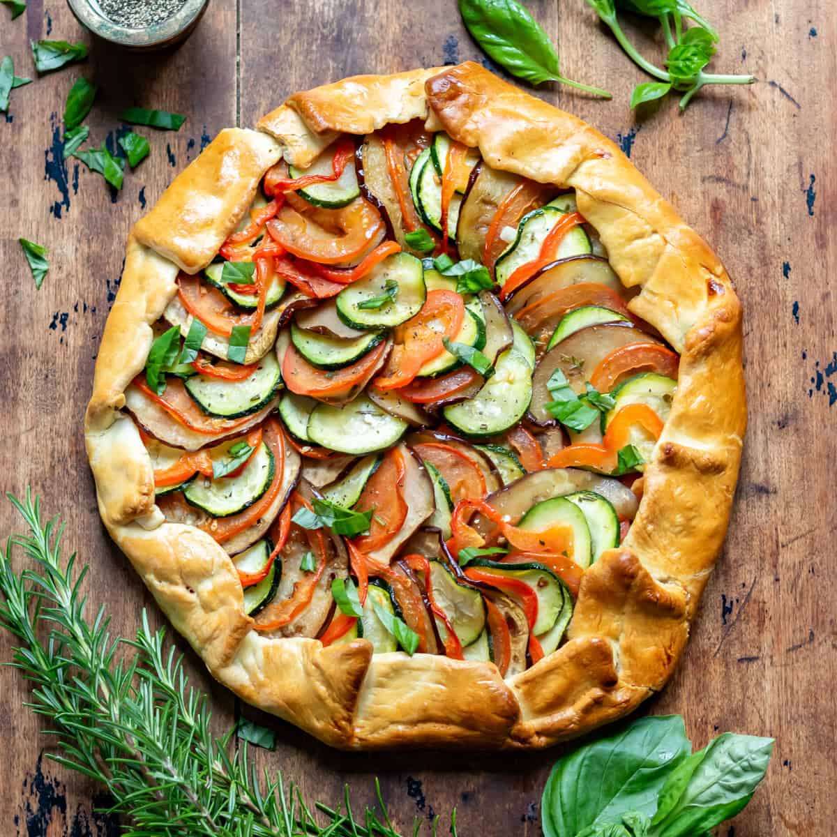 This ratatouille Vegetable Galette combines Mediterranean veggies in a flaky open pie. Simple for midweek yet elegant enough for the holidays.