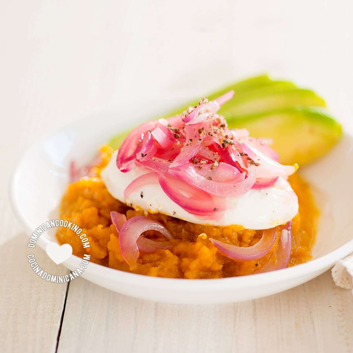 - Garnish the puree with the onions. You can serve with poached eggs and some slices of avocado.