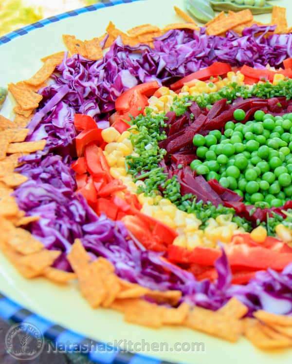 - The tortilla strips cooperate better around the edge of the salad, but they did get soggy faster. It's sort of a toss-up; the tortilla strips taste better but the chow mein noodles stay crunchy longer. Both work. This salad works best when you use a mandolin with the fine shred setting.