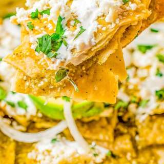 - Add the tortilla chips in with the sauce. Gently flip over the tortilla chips until they are all well coated with sauce. Let cook 2-3 minutes, until the chips have softened slightly (but not too much!).