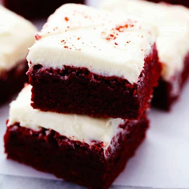 These red velvet brownies are seriously the perfect brownie recipe! Perfectly moist and chewy with the bright red color. The cream cheese frosting is the perfect finishing touch! These are AMAZING!