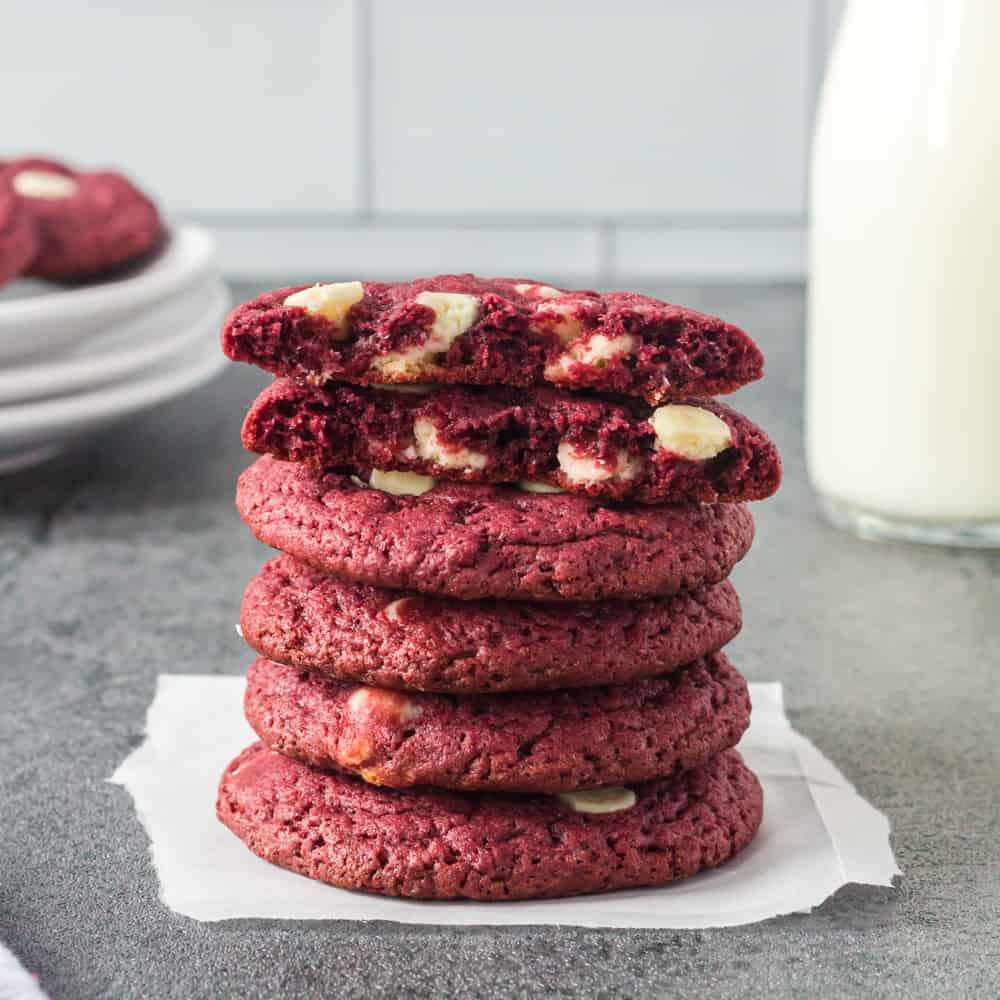 These red velvet cake mix cookies with white chocolate chips are melt-in-your-mouth delicious. They are soft and chewy, with just the right amount of sweetness!