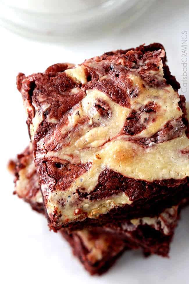 - Cream Cheese Layer: Beat cream cheese in stand or hand mixer just until smooth. Add sugar, egg and vanilla and beat just until incoporated. Drop by spoonfuls onto the brownie batter and swirl together by dragging a knife through both layers.