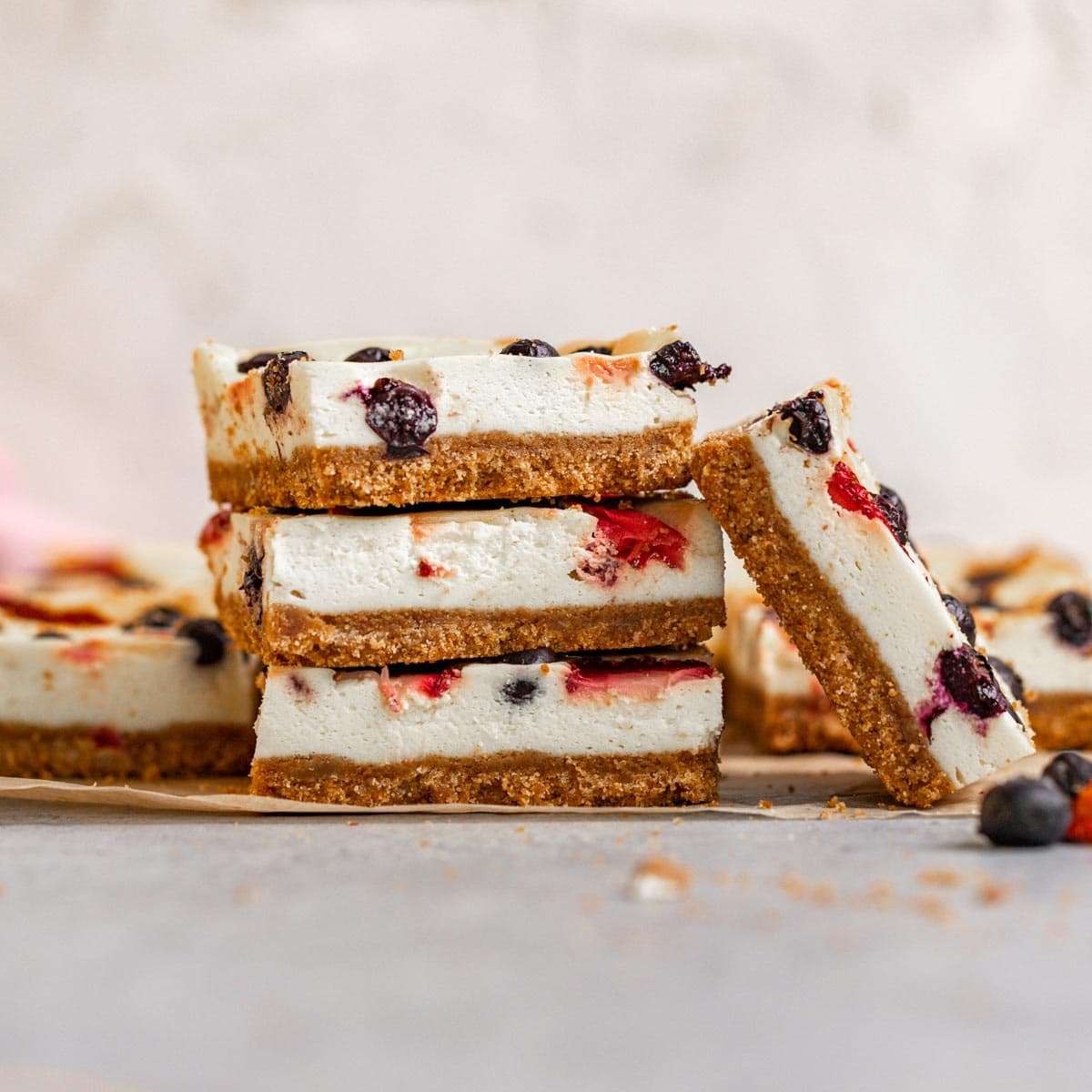 Red White and Blue Cheesecake Bars are the perfect patriotic dessert for July 4. Graham cracker crust and creamy cake are topped with sweet berries.