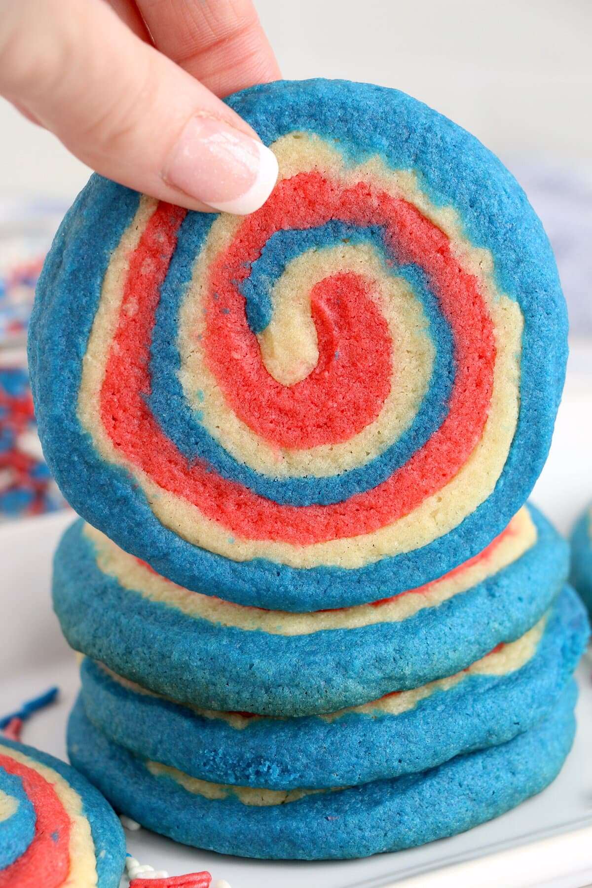 Red White And Blue Cookies are the best patriotic cookies for the holidays. Made in a playful pinwheel shape, these cookies have just the right amount of sweetness and look so fun and festive.