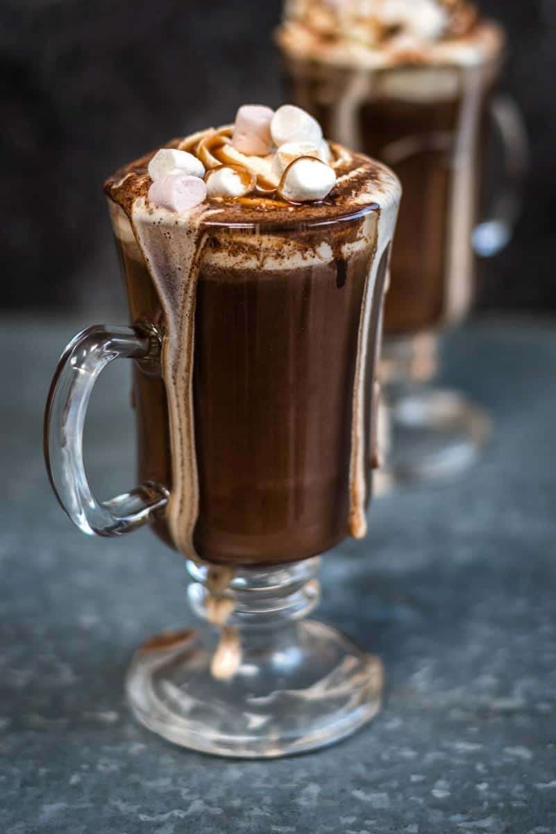 - Carefully pour the chocolate into two large glasses or four small cups.