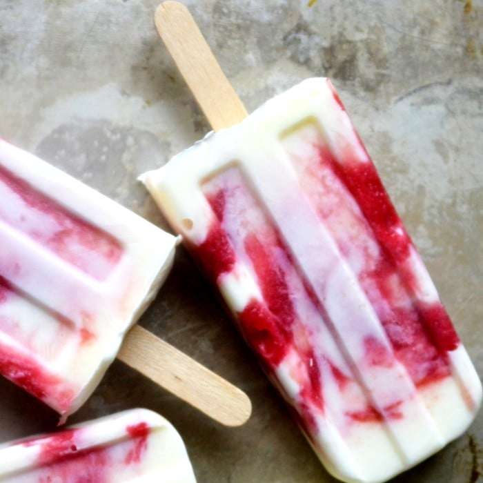 Rhubarb and Greek Yogurt Popsicles have tart, rhubarb jam marbled through rich (full fat!) Greek yogurt. A light and refreshing sweet treat!