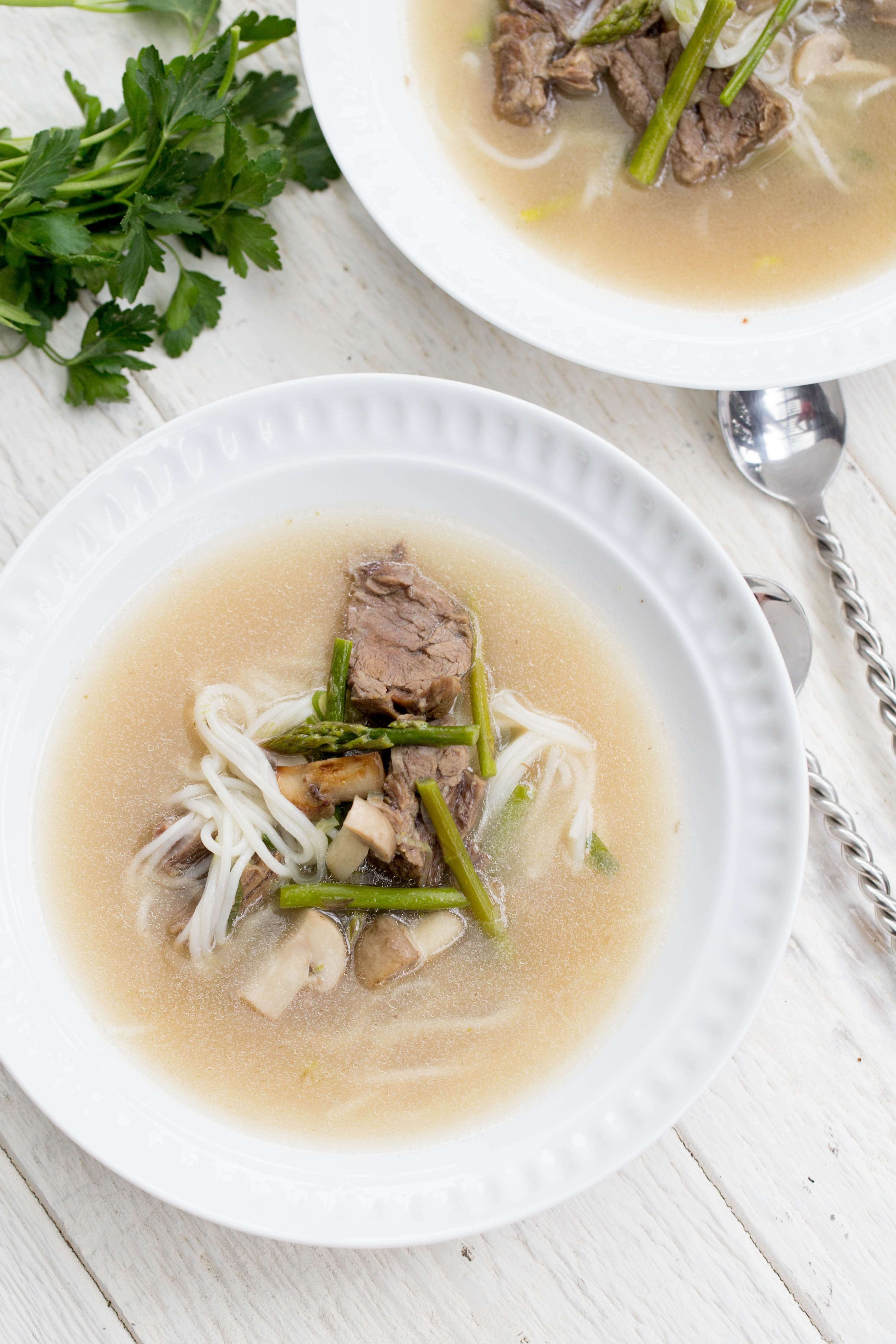 This rice noodle soup with beef is inspired by traditional Vietnamese pho. Made in a fraction of the time and super comforting!