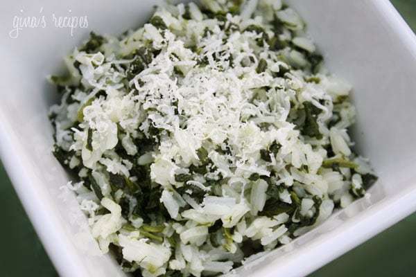 - Toss rice with spinach and top with good grating cheese like Pecorino Romano.