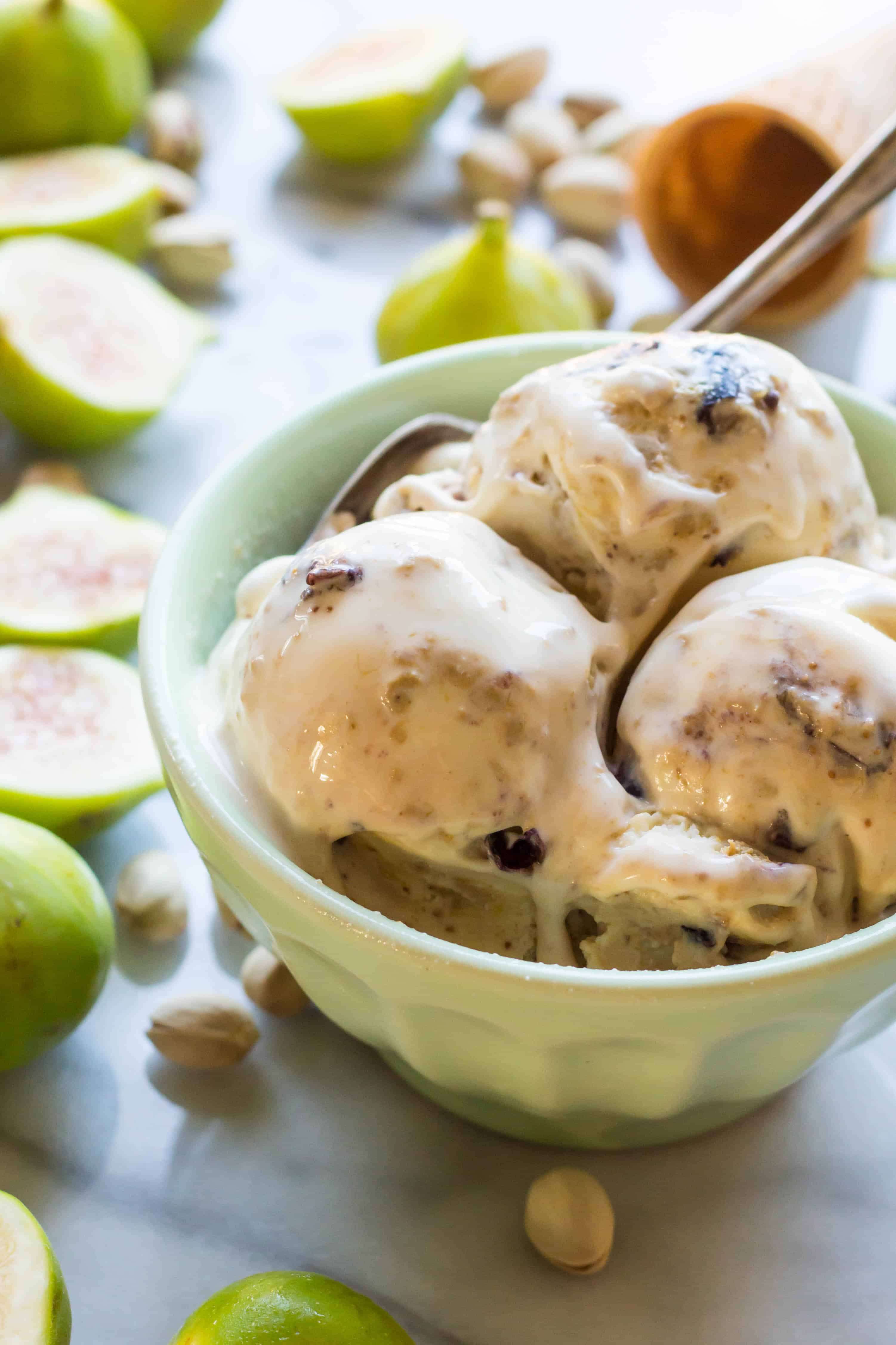 This over the top recipe for Ricotta Gelato with Pistachio + Fig combines all my favorite Italian flavors - ricotta gelato with fig and pistachio gelato! The best gelato flavor ever!