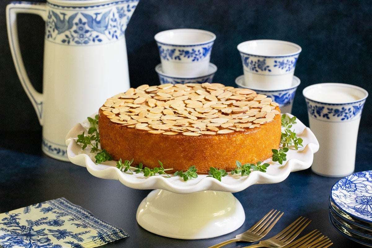 - Place almonds in a small baking pan. Spread to a single layer. Bake for 8-12 minutes or just until they're beginning to turn pale golden, stirring every 3-4 minutes. Remove from oven and set aside to cool (these will be used at the end to top the cake).