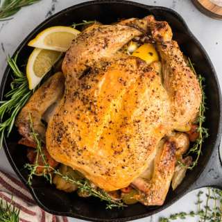 This simple and delicious roast chicken recipe tastes like you spent all day cooking it, but only needs 10 minutes of prep!