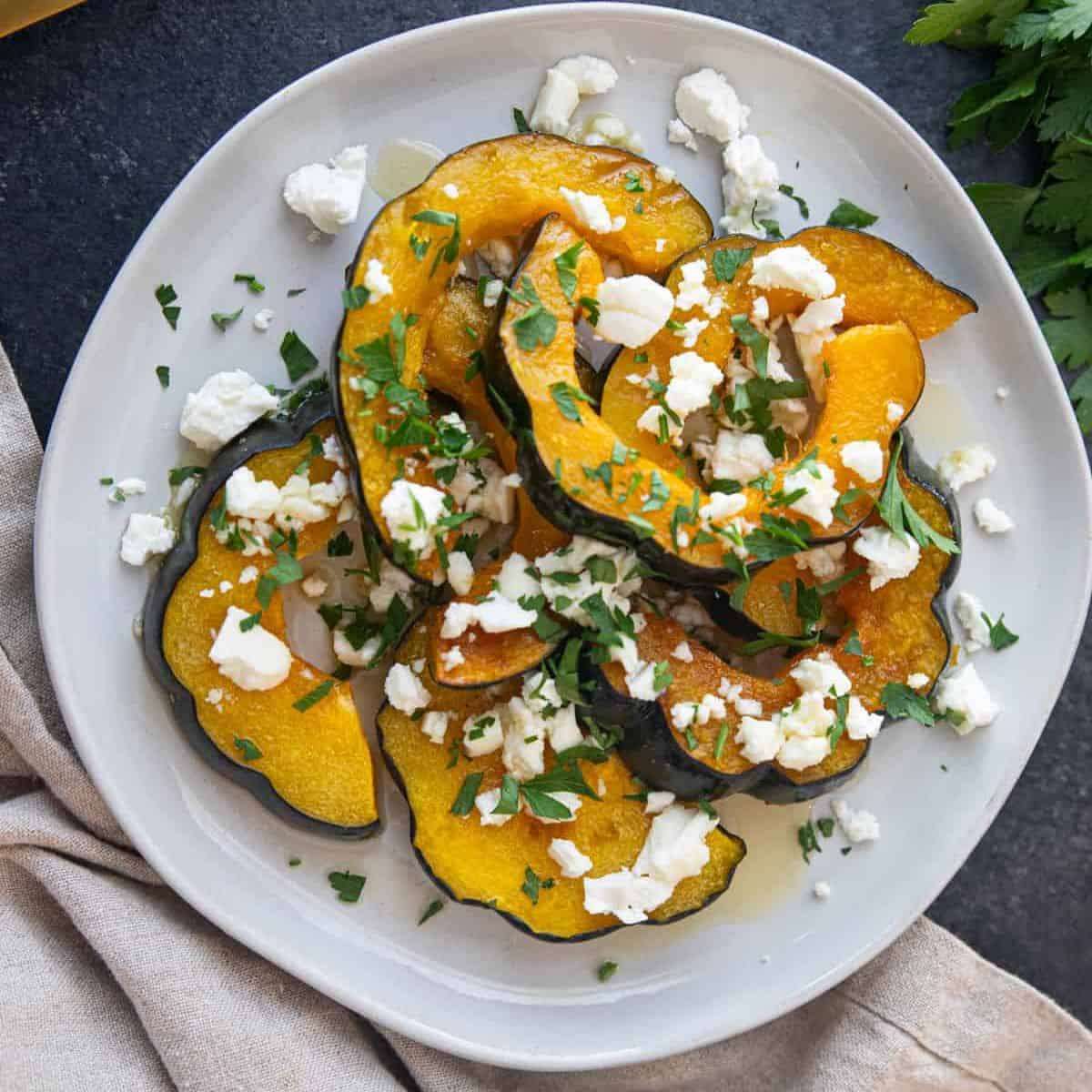 - Top roasted acorn squash with honey and cinnamon, tahini and molasses or feta, honey and parsley.