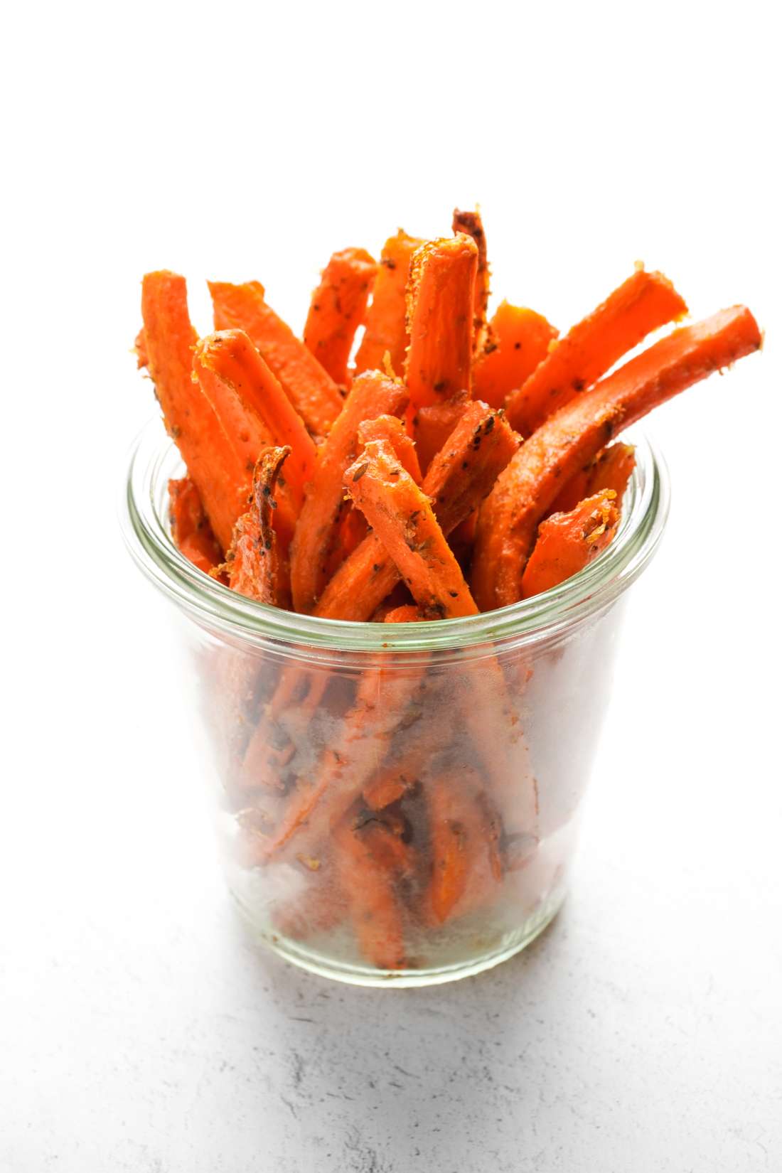 - 2 pounds of large carrots peeled, and cut into fry-like shapes