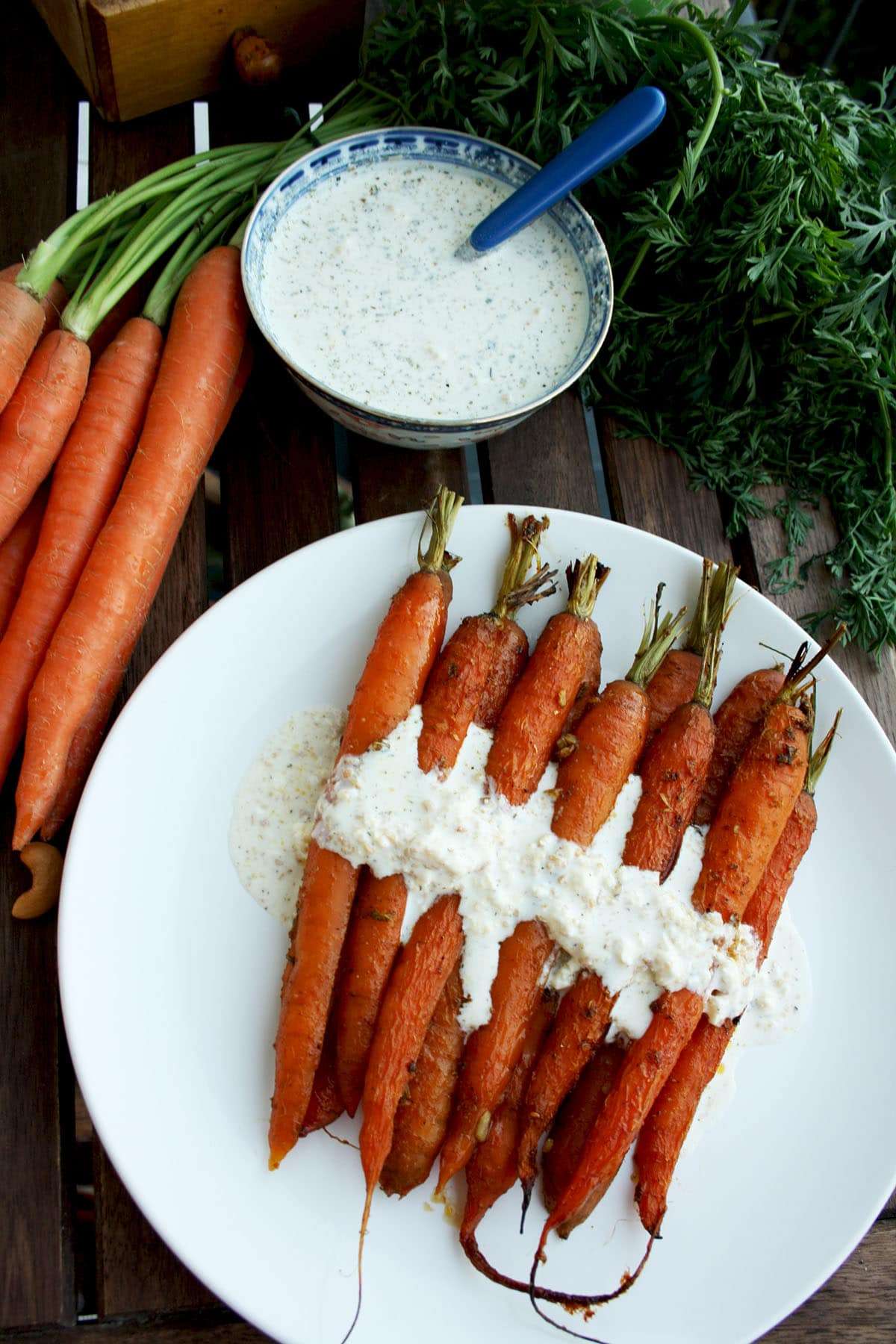 Roasted Carrots with Indian Spices and Cashew Feta Dip