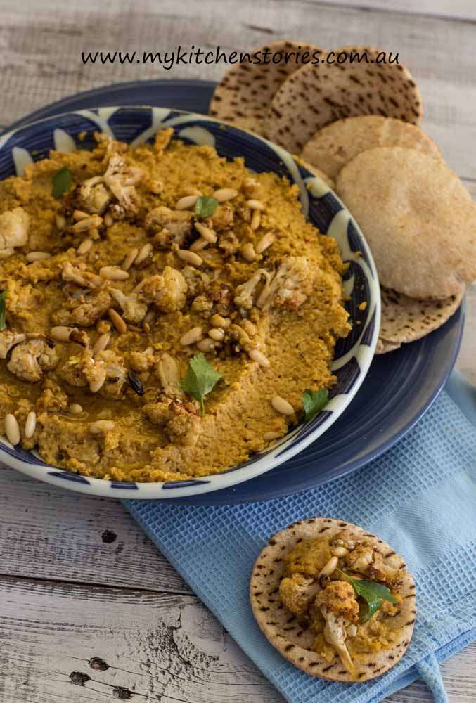 - Roast for up to an hour ( fan forced may be shorter) or until nicely browned and well softened. Set aside about a cup of roasted cauliflower for the finished dip. Pour the rest of the cauliflower, drained beans, garlic, spices, Dijon, tahini, oil and juice into the processor and blend till it is as fine as you can get it, scraping down the sides occasionally.